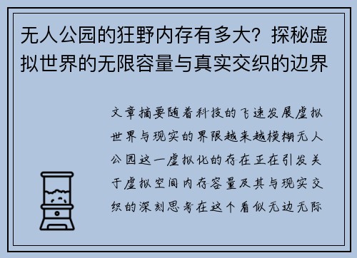 无人公园的狂野内存有多大?探秘虚拟世界的无限容量与真实交织的边界