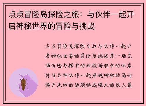 点点冒险岛探险之旅:与伙伴一起开启神秘世界的冒险与挑战